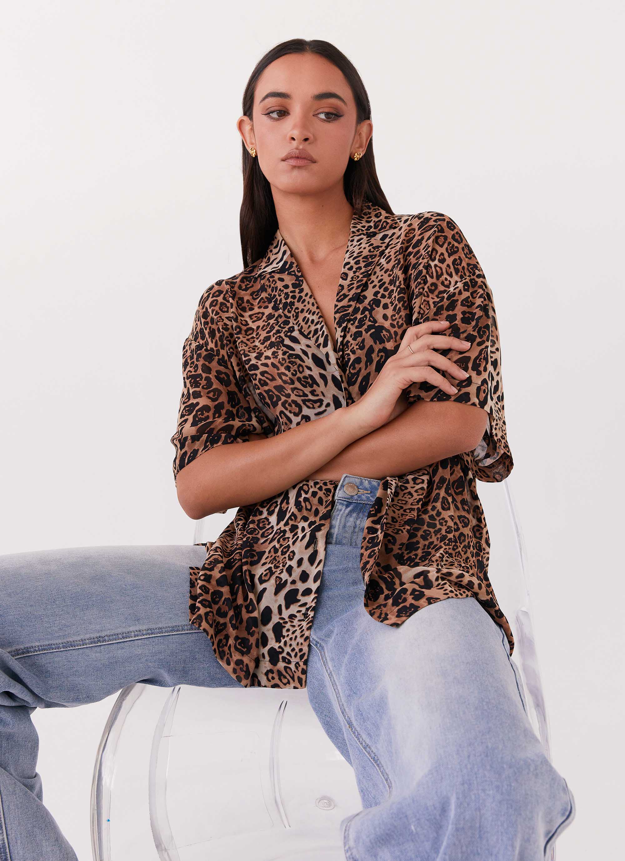 Sweet Relief Chiffon Oversized Shirt - Leopard